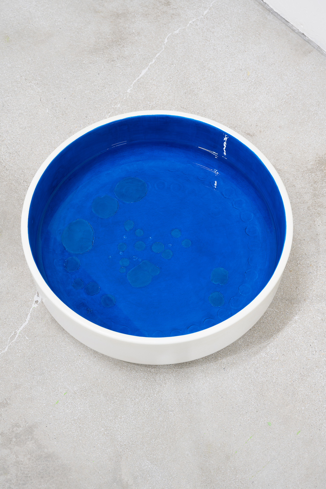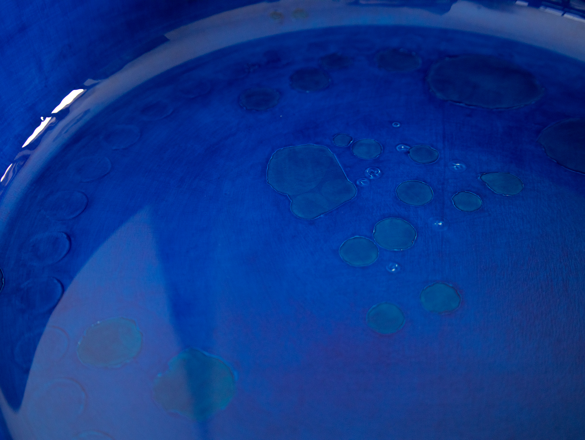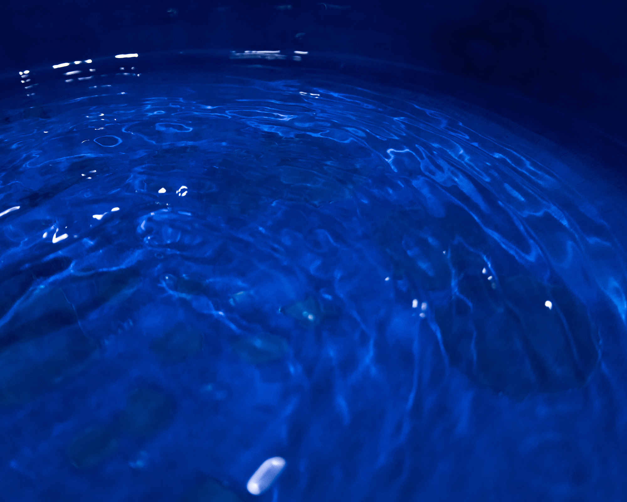 Murmure est une vasque en céramique d’un bleu profond remplie d’eau chargée durant les phases d’un cycle lunaire.